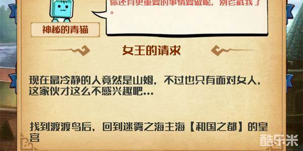 在女王的请求中需要找到这个渡渡鸟,然后回到迷雾之海主海和国之都的皇宫才能完成。