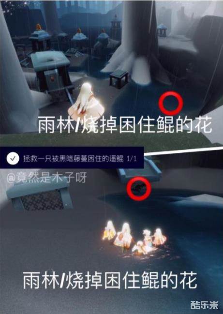 【在雨林水母图右边隐藏图出口下方湖泊中解救遥鲲】