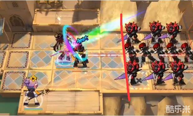 2.如图所示等紫枪怪走到下图位置时开启技能。