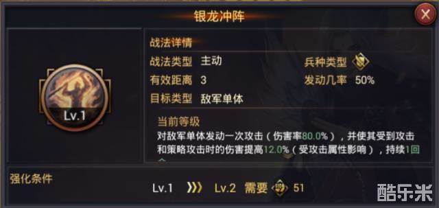 赵云的自带技能【银龙冲阵】虽然输出不算高,不过有一个增加伤害的辅助效果,而这个效果作为指挥技的黄月英却是享受不到的,因此黄月英和赵云并非是一组很好的搭配,所以就选择SP赵云补充一些伤害;而关银屏是纯主动输出战法,能享受到赵云的增伤加成,用赵云能够进一步提升关妹的输出伤害。