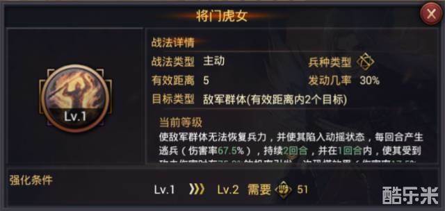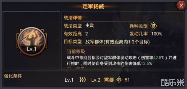 关妹作为标准的蜀步主力,技能看上去也确实不错,虽说1600%本身不算特别高,但是稳定性极强,而且自带的25%加成对【一骑当千】,【折戟强攻】这种强力输出也是稳定的提升,这也是成为一线队的重要条件;攻击距离虽然不算短,但是关妹的常见位置大营偏多,本身自带技能是打不到对面大营。总体来讲关妹输出环境,契合度,本身伤害都很优秀。