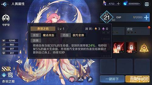 鸾是目前守护型人偶中唯一的一个SSR,也是是一个对新手极其友好的人偶。均衡的双抗以及不俗的血量,让她在面对前中期的绝大多数副本都游刃有余,能很好保护队友。而且在解锁被动技能之后,还可以在战斗时自动复活一次,极大的提升了坦度和容错率。
