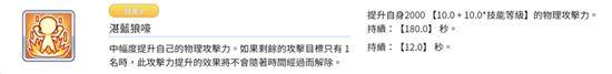 同样是狼吼,水狼的狼吼是给自身加一个物攻buff。如果只有一名敌人,这个物攻buff将持续180秒,否则只持续12秒。180秒意味着持续整场战斗,越到后面,水狼的伤害就会越高。