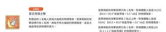 对前方一名敌人造成伤害,如果只有一名敌人,则追加小幅伤害,并造成小幅度破甲。该技能的破甲倍率仅有0.3,远不如普通狼姐的狼吼高。专武后该技能不仅提升数值,还能给自身加一个物攻buff,相当不错。