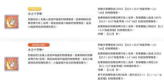 对前方一名敌人造成伤害,如果只有一名敌人,则提高伤害倍率,并且附带高额的破甲效果。水狼的ub破甲倍率是1.1,普通狼姐的破甲倍率是0.9,可以看出水狼的ub破甲量要比普通狼姐的高,并且伤害量也比普通狼姐的高。还要注意一点哦,水狼的ub在面对多个敌人时不会造成破甲。