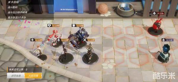 战斗胜利;战斗在25秒内结束;我方存活5个手办。(困难)