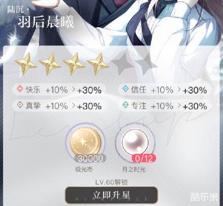 待四星卡牌等级60级后便能开启升星功能,四星升五星所需材料为3W极光币和12个月之时光。