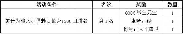 玩家点击右侧“聚宝盆”参与【魅力榜】活动,活动期间内玩家新增魅力值达到要求将获得对应奖励;