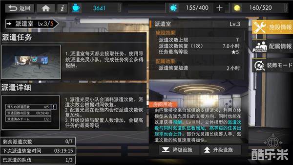 派遣室提供派遣任务。通过完成派遣任务我们可以获得养成素材以及光珀。这是光珀最大最稳定的免费来源。派遣室升至满级后,平均每天可获得100-120光珀。