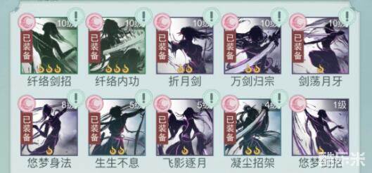 这个配置,效果就是用2个技能后下一个技能伤害提升,用癸水后暴击提升,双龙主要输出,自身提高暴击,癸水提升暴击,断浪和击云叠剑势,3层后增伤,一个技能叠2层,全自动;