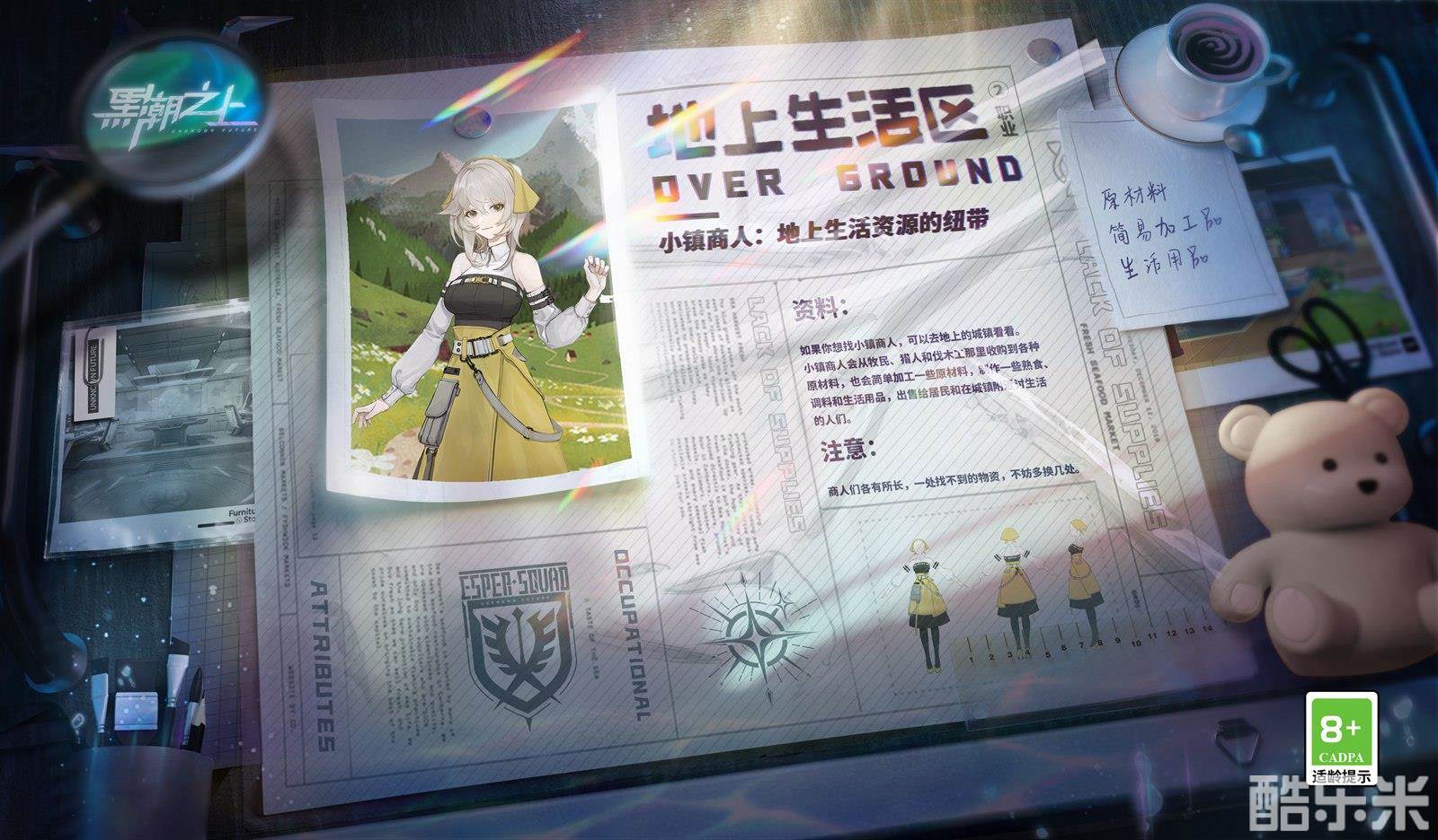 冒险旅途再开,全新际遇准备!今日,《黑潮之上》新世界NPC「小镇商人」重磅亮相!在资源匮乏、危机四伏的地上区域,「小镇商人」是沟通往来的重要存在!抢先了解「小镇商人」情报,解锁别样互动玩法,收获丰富物资惊喜!在危机重重的旅途中,她们将在关键时刻给你一臂之力~