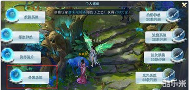 玩家可通过主界面的“修炼”进入外观系统,进入外观系统以后,玩家便可以查看到目前角色所佩戴的幻翼。