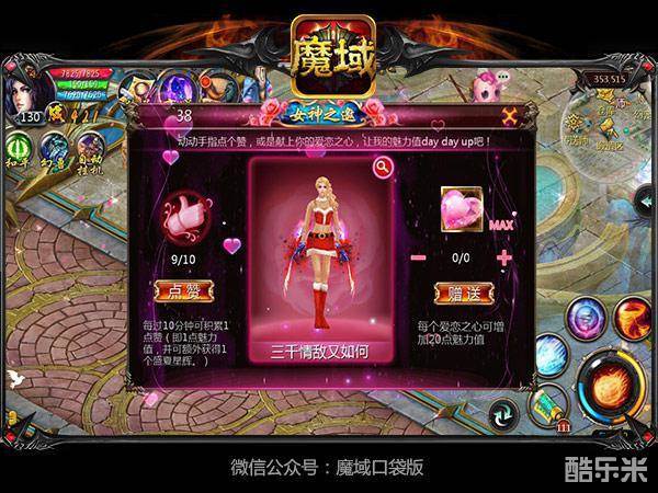 最浪漫的三个字不是我爱你,而是在一起!在国民级热血PK手游魔域口袋版的七夕情人节中邂逅你的伴侣,一起闯荡!花魁赛女神玩家云集,“倾世女神”加冕立即体验,速速加入一起甜蜜这个七夕!