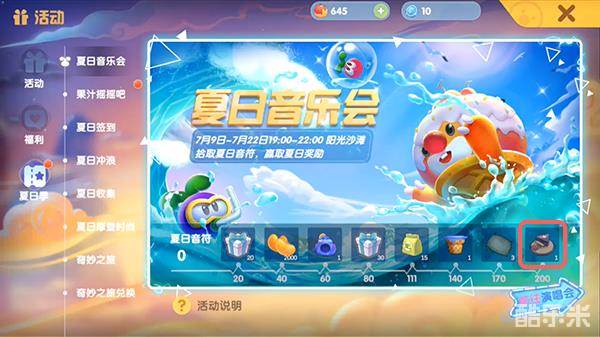活动位置:游戏右上角【夏日季】-【夏日音乐会】参与。