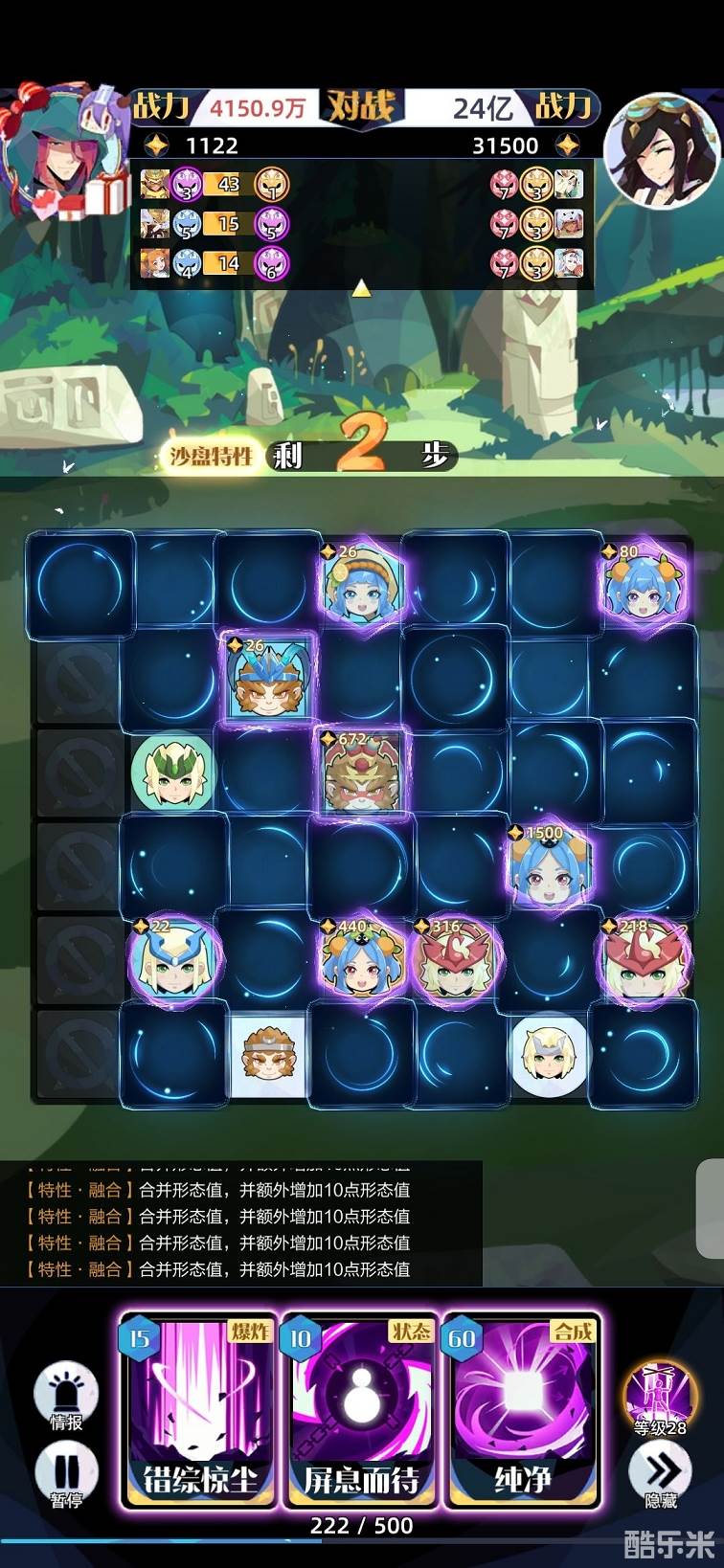 2、拉出一个格子,用特性合成,尽量凑到剩下格子最少,然后重复到倒二步(倒一形态值最高,倒二稳一点);