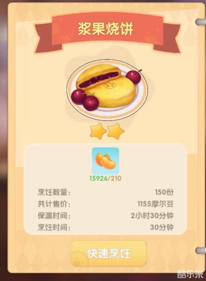 浆果烧饼一次150份赚1155摩尔豆,一份7.7摩尔豆。成本210摩尔豆。
