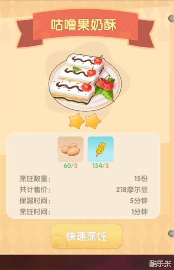 咕噜果奶酥一次15份赚218摩尔豆,一份14.5摩尔豆。成本126摩尔豆。