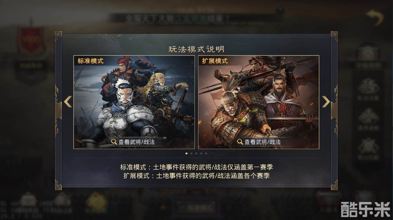 - 标准模式,土地事件获得的武将和战法仅涵盖第一赛季