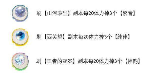 要想最高效率的刷到这三个道具,我们分别可以在以下的几个副本中进行刷取: