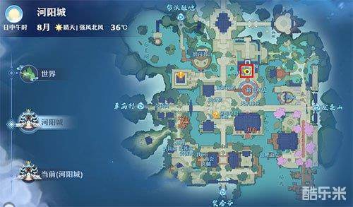 就是玩家需要来到这个河阳城,然后来到这个宝图兑换这里,就是如图所示的这个地方。