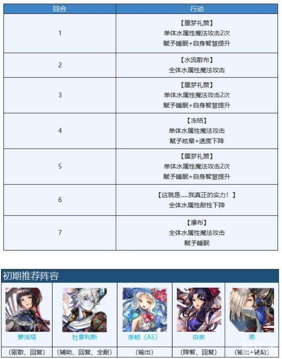 1、催眠的应对。推荐队伍中带上萝洁塔(优先)/玛丽埃尔/由奈/拉布莉/杜拿利斯等可以处理异常状态的角色。