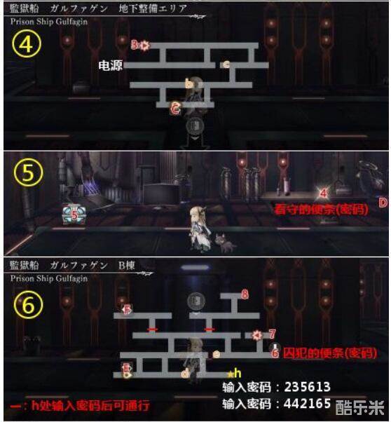 宝箱:1~12,其中4是看守的便条(密码),6是囚犯的便条(密码)
