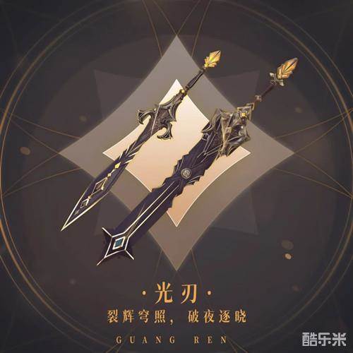 利剑出鞘,玄色剑身上刻有金色菱形印记,光芒如同有生命力一般绕着剑身流动,仿佛驱散黑夜的黎明之光。
