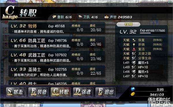 游戏中可以自由的切换职业,让你再不受职业的限制,在转职界面中,你可以看到各个职业的特性、成长以及技能。