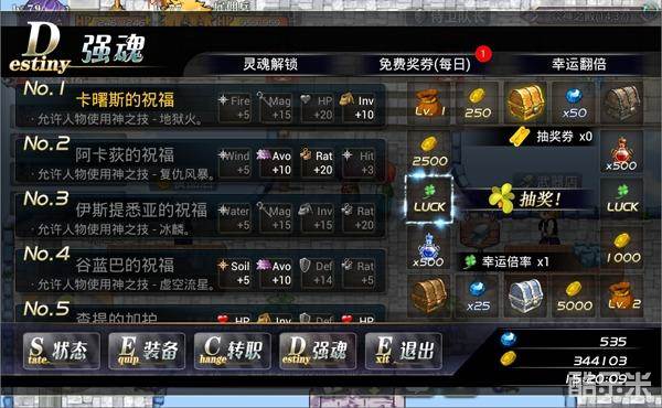 在强魂界面还可以进行转盘抽奖,每天有一次免费抽奖机会哦,不要忘了哦!当然你也可以花费宝石来进行抽奖。