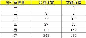 1个六阶妖引草=3*五阶妖引草=9*四阶妖引草=27*三阶妖引草=81*二阶妖引草=243*一阶妖引草