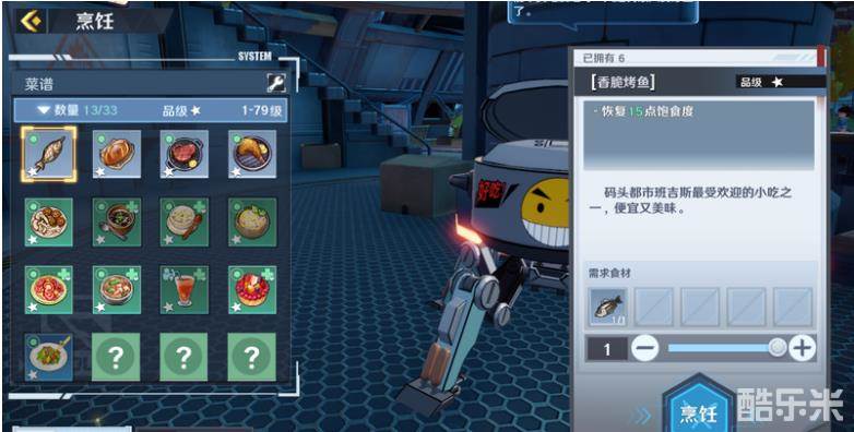 烹饪可以按照已解锁的食谱消耗指定素材料理食物。