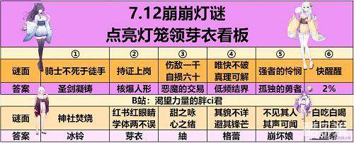 崩坏学园2夏影灯谜答案一览