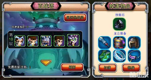 当然,玩家每天有一次刷新百战塔的机会,可以从第一层重新攻打。由于目前每5层才会有一层有机率爆出主公装备,可以说产量极低。因此,想要凑齐主公装备的玩家一定要经常光顾这里啊。