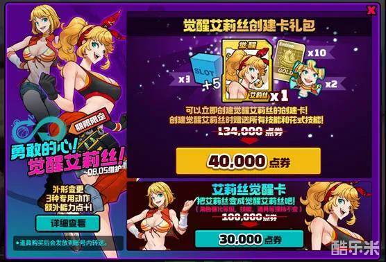 活动期间内,活动界面出售艾莉丝觉醒卡和觉醒艾莉丝创建卡礼包。