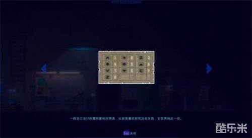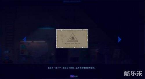 打开对照表,正面有一个图案文字对照,可以切换到背面,出现带眼睛的三角,文字提示我们去找“荷鲁斯”寻求帮助,旁边的绿色保险柜子现在不知道密码打不开。