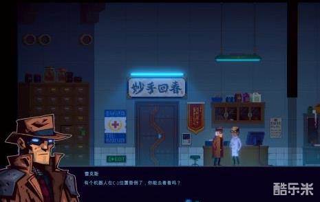 从医生的诊所出来后,回到花夜下町的最上层,在电梯边会撞见一个虚弱的机器人倒在地上,和它对话可以选择接取帮助布鲁的支线,我们选择接取。
