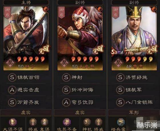 由于孙权和常规的骑兵用法不同,而且自身骑兵和弓兵也是S级,因此孙权+太史慈+鲁肃,就成为了非常合适并且不吃武将红度的阵容。在对抗蜀国弓、吴国枪、和魏国法队伍都有一定的胜率,而且弓战基本不害怕任何队伍。不过就像开头小编说的一样,并没有什么完美的队伍,这一队非常海拔爆发队,所以尽量避开爆发队伍。