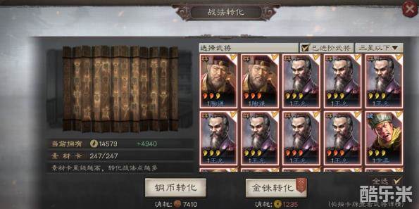 积累来的铜币用来招募,紫卡、蓝卡进阶带走,尽量把250个武将容量占满。另外由于S3的事件战法材料还未公布,所以尽量少拆武将,尤其只有一张的橙卡,能留则留。
