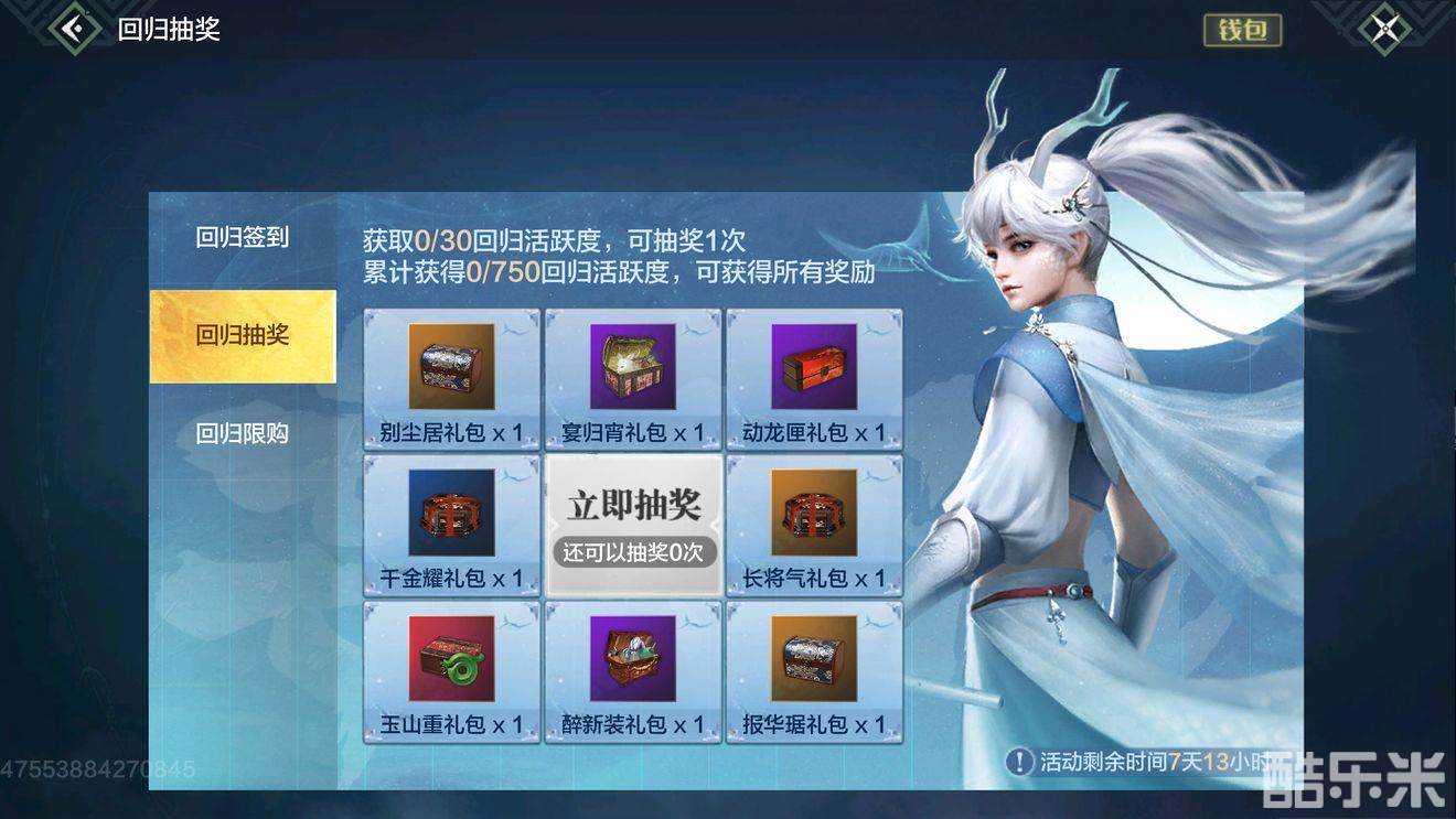 本次回归活动分为三个部分,分别是【登录礼包】【活跃抽奖】和【大折扣回归礼包】。