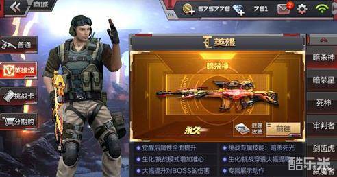如果你现在已经拥有了一把暗杀星,那么东东建议你一定要将暗杀星进行觉醒变成暗杀神,暗杀神可不仅仅是外观变得更加酷炫,在整体的强化上有非常大的提高,在生化模式中对付生化幽灵,有暗杀神就够了!