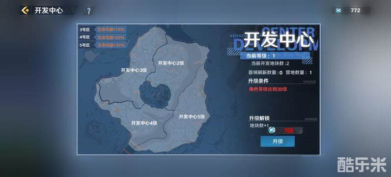 这些区域里除了1号区域是初始就开启的,其余的区域都需要通过升级开发中心来解锁。