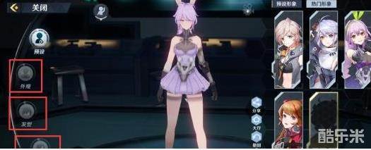 2、目前捏脸界面里边有4个预设形象供我们选择,点击角色底下的男/女可以选择性别,你可以随意选择1个形象,然后设置他的外观、发型、五官;