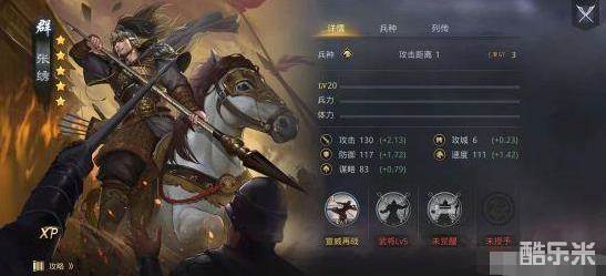 4.张绣:张绣自身技能也是追击技能,前三回合,普通攻击后再次对目标发动一次攻击,带钝兵挫锐相当于前三回合稳定的输出。不过张绣在搭配上,有点尴尬。貌似组蜀骑替代徐庶,没了~