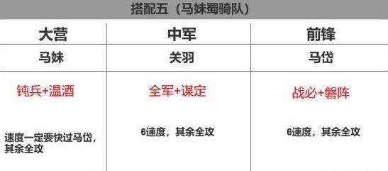 队伍点评:内战无敌,个人觉得打传统蜀骑还是这队厉害,综合来说还是传统蜀骑更强点,不过这队自然也不弱,别再问马妹为啥不带疾击,因为被马超抢了......