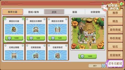 除了新玩法与新结婚对象外,还会将石器时代系列皮肤与摆件在奶牛币商城中重新上架,供大家使用奶牛币进行购买。野性十足的猛犸象坐骑,古朴神秘的疯狂巨石屋,还有桥、留言板、狩猎栅栏等系列皮肤摆件,快动动你的手指,将庄园打造成史前文明的样子吧。后续还将有更多的限定皮肤会陆续登录奶牛币商城,欢迎各位前来抢购。