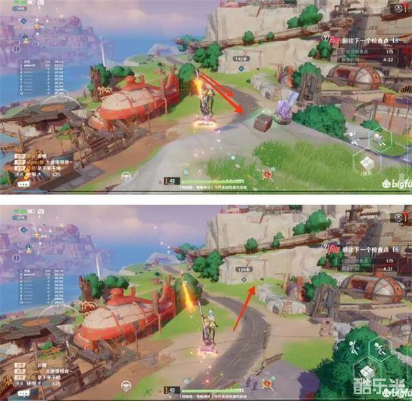 经过第一个检查点后跳下悬崖,尽量不要落在桥里边,可以空中冲刺,落在桥外边,落地后迅速开启载具冲向第二个检查点。
