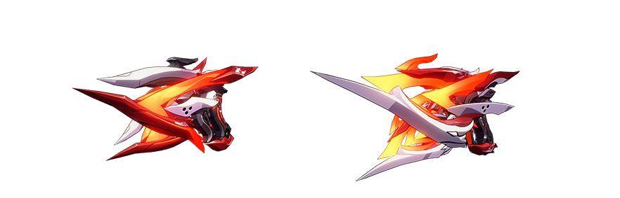 「焢煌之钥」与「焢煌之境:劫炎永燎」是5.0版本新登场的双枪武器及其超限形态,能够提升使用者的火焰元素伤害与必杀技、分支攻击造成的全伤害,武器主动会对敌人造成多段火焰伤害并为自身恢复能量,「薪炎之律者」使用时使用武器主动能够额外回复能量并能够引爆敌人身上的「薪烬标记」。