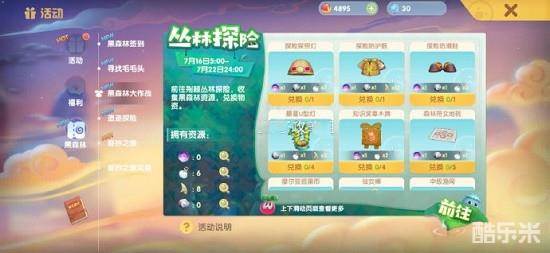活动说明:黑森林大作战之丛林探险篇章来了!前往新地图荆棘丛林冒险,收集黑森林资源,兑换物资吧!特制探险服套装等待勇敢的摩尔!