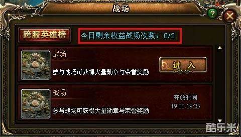 1、玩家每日有10次进入战场机会,但只有前2次能获得战场宝箱和结算奖励等收益。次数用完后,挖矿只有积分和荣誉收益,无战场宝箱和结算奖励,每日凌晨5点重置收益次数。