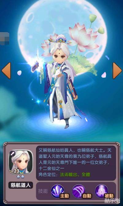 自动技能:慈航普度-远程随机前排一个法术攻击,增加法术攻击固定值buff,持续2回合